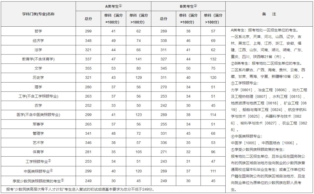 2021年全国硕士研究生招生考试考生进入复试的初试成绩基本要求(学术型学位类)