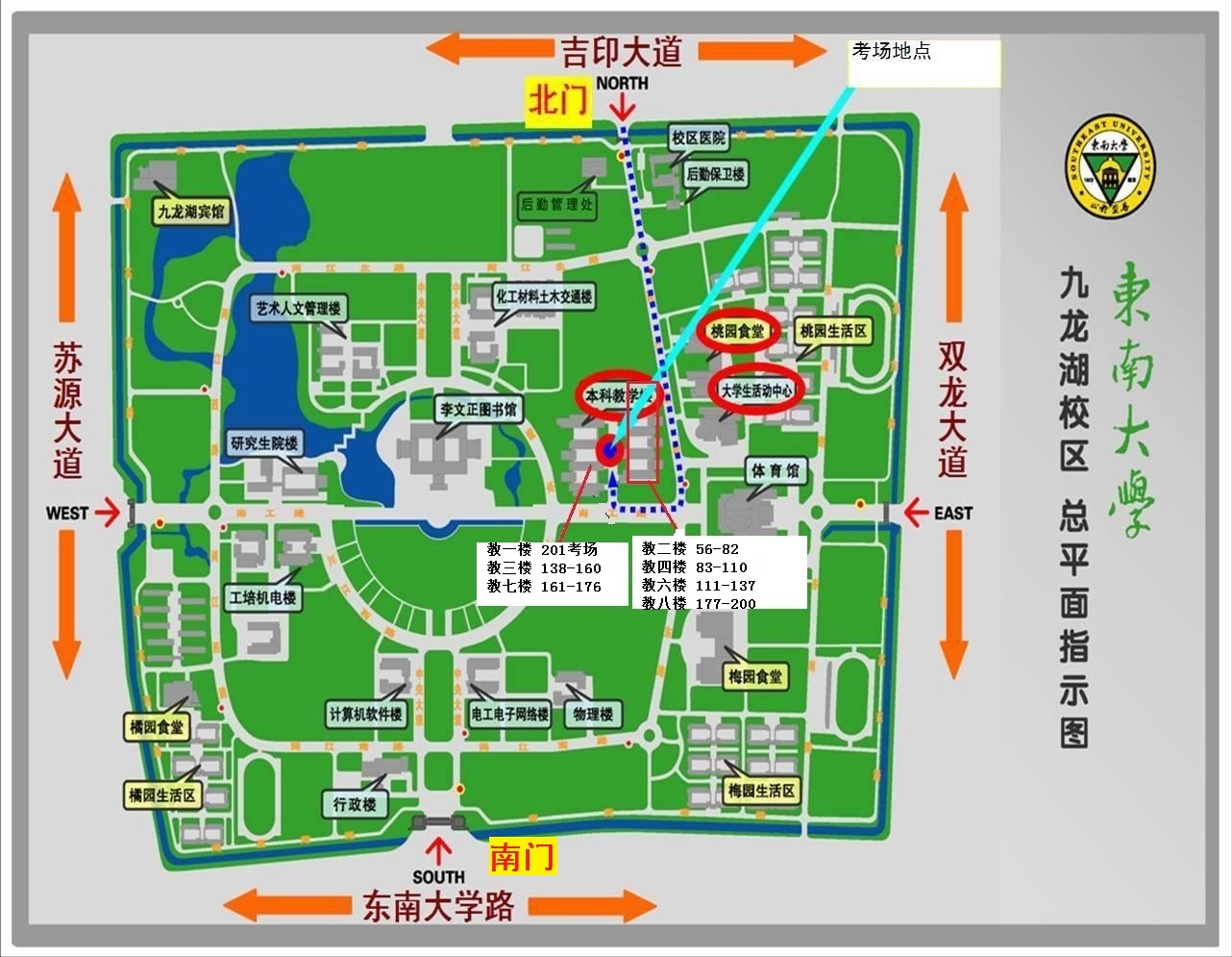 1. 四牌楼校区:所有考生须统一从南门步行入校。