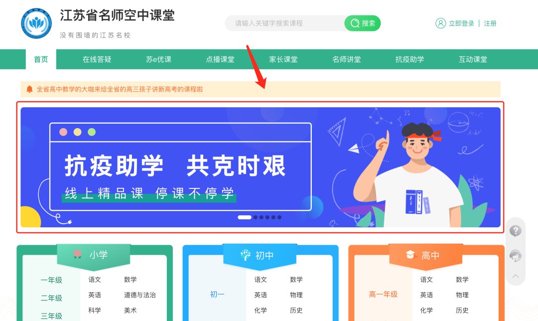 1、入口:电脑端百度搜索【江苏省名师空中课堂】进入或直接输入官网链接进入,官网地址https://mskzkt.jse.edu.cn