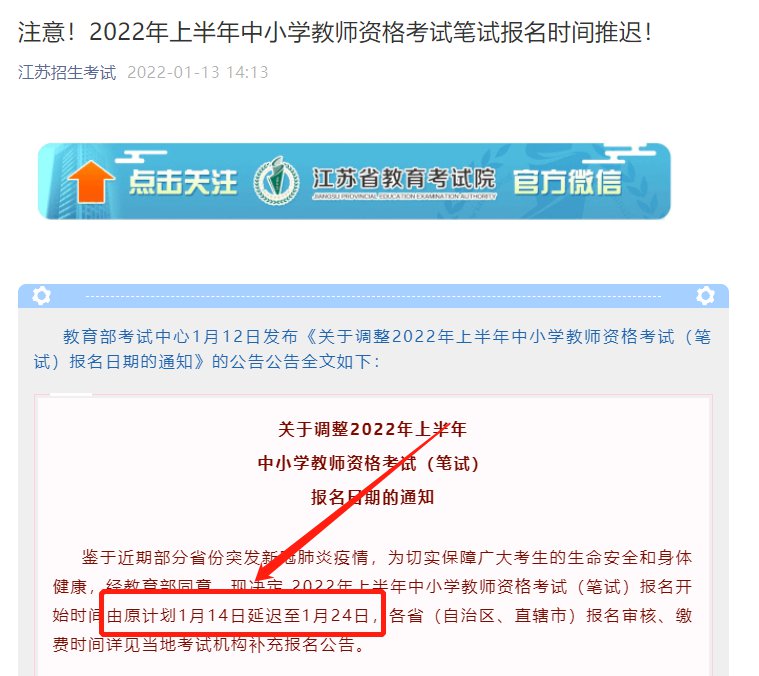 2022年江苏上半年教资笔试报名延迟到几月几日开始报名?