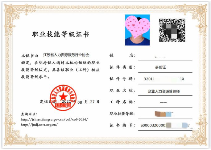 江苏人力资源管理师证书是哪个部门发的