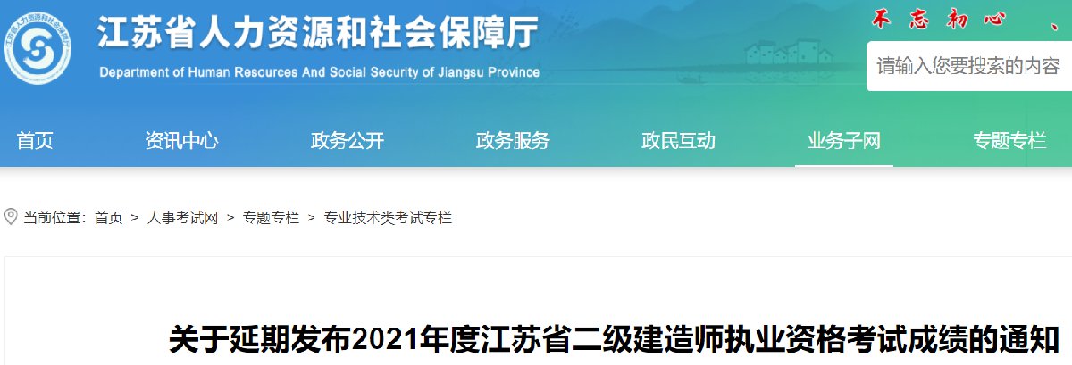 历史消息:《关于延期发布2021年度江苏省二级建造师执业资格考试成绩的通知》