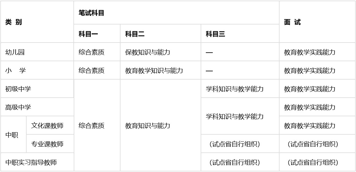 注5、初级中学、普通高级中学、中职文化课类别教师资格考试面试科目,与笔试科目三“学科知识与教学能力”相同。报考“*日语”、“*俄语”、“*心理健康教育”3科考生,该类别笔试科目一、科目二合格即可进行面试报名。