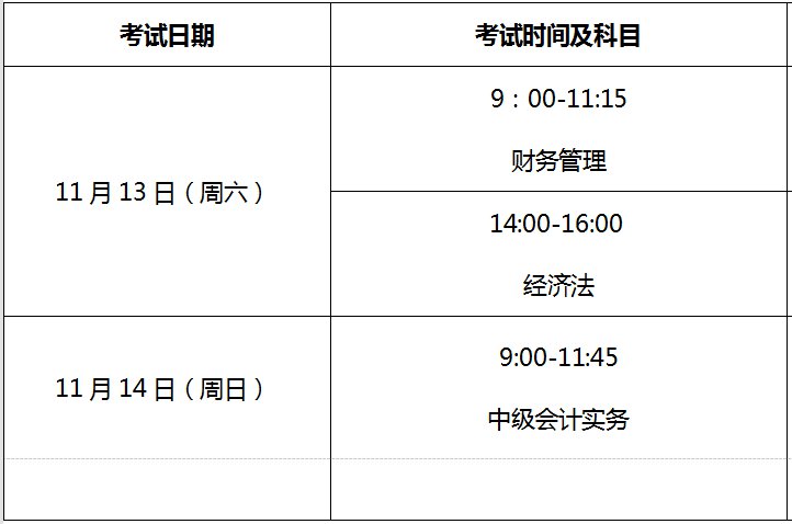 中级会计资格延期考试于2021年11月13日至14日举行,各科目具体考试时间如下: