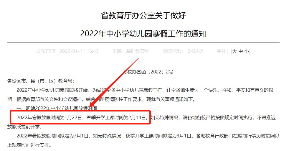 江苏2022年寒假放假多少天? 江苏寒假放假时间2022