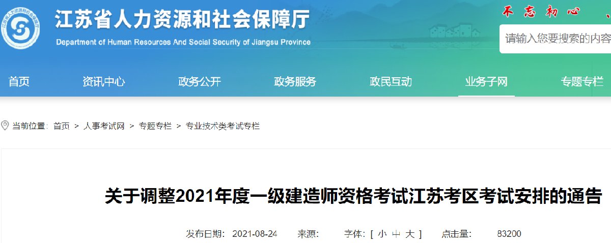 关于调整2021年度一级建造师资格考试江苏考区考试安排的通告