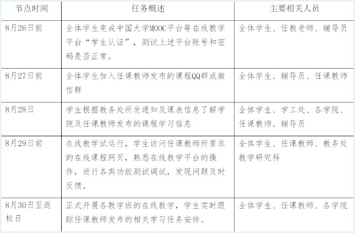 2021年秋季学期学生返校和新生报到时间推迟到9月15日之后。开学初,所有课程开展线上教学。非2021级学生于8月30日(第1周)开始进行线上学习,2021级新生于9月6日(第2周)开始进行线上学习。教学安排中所有课程的上课时间保持教务系统正常课表节次不变。