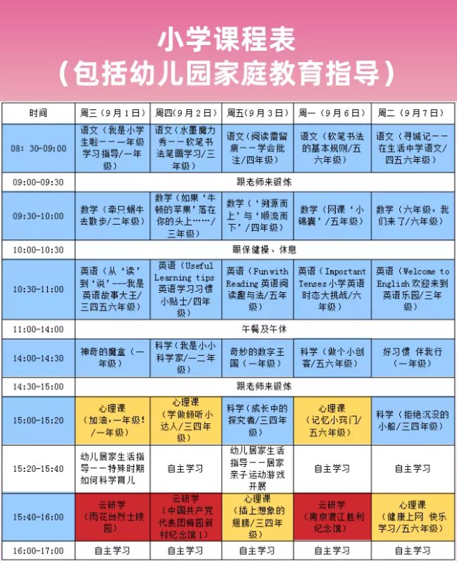 各区各校将落实立德树人根本任务,按照“五育并举”要求,根据实际为学生提供网上学习课程,内容不仅包括学科知识,也会将思想品德、心理健康、家务劳动、体育锻炼等内容纳入其中。