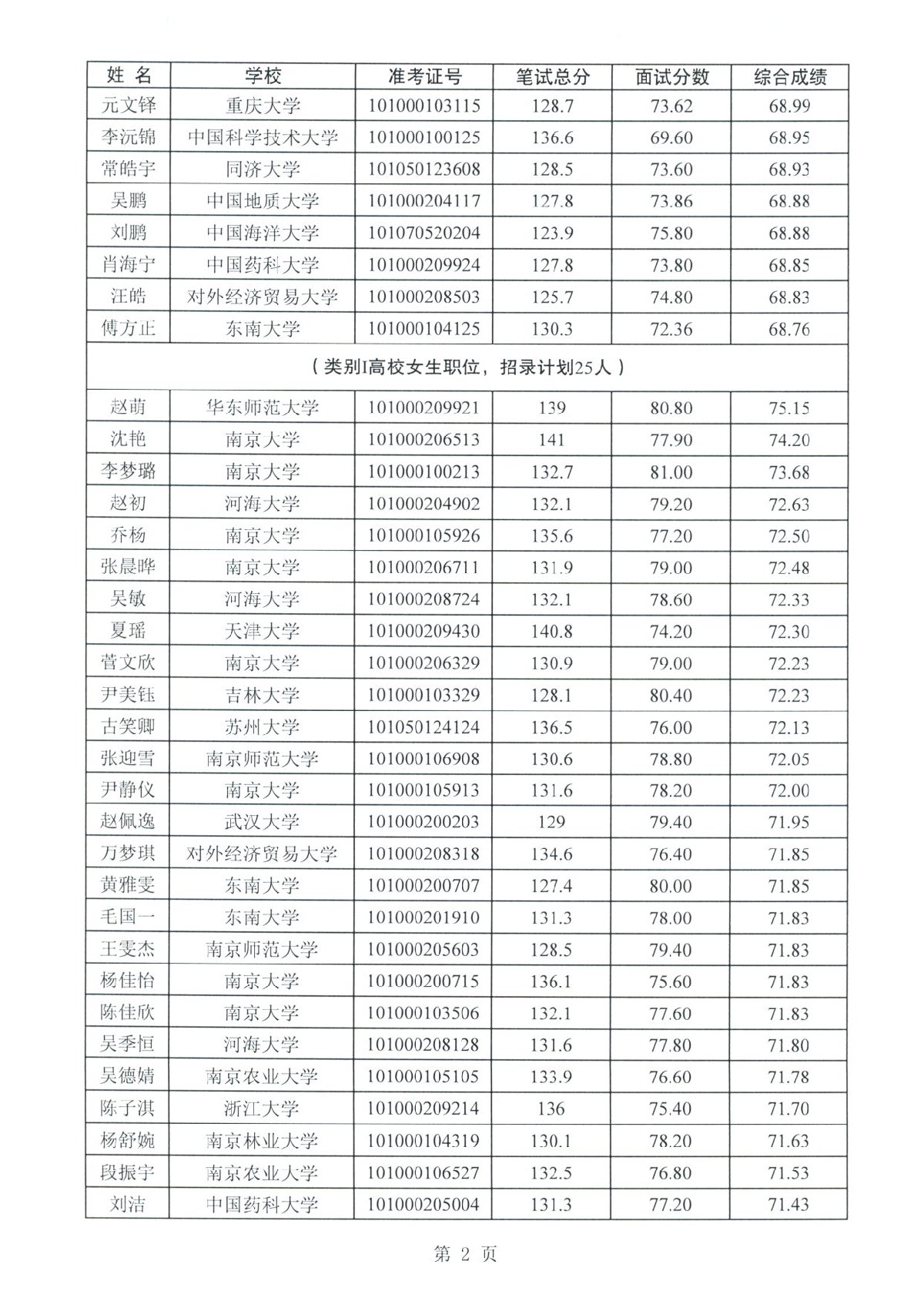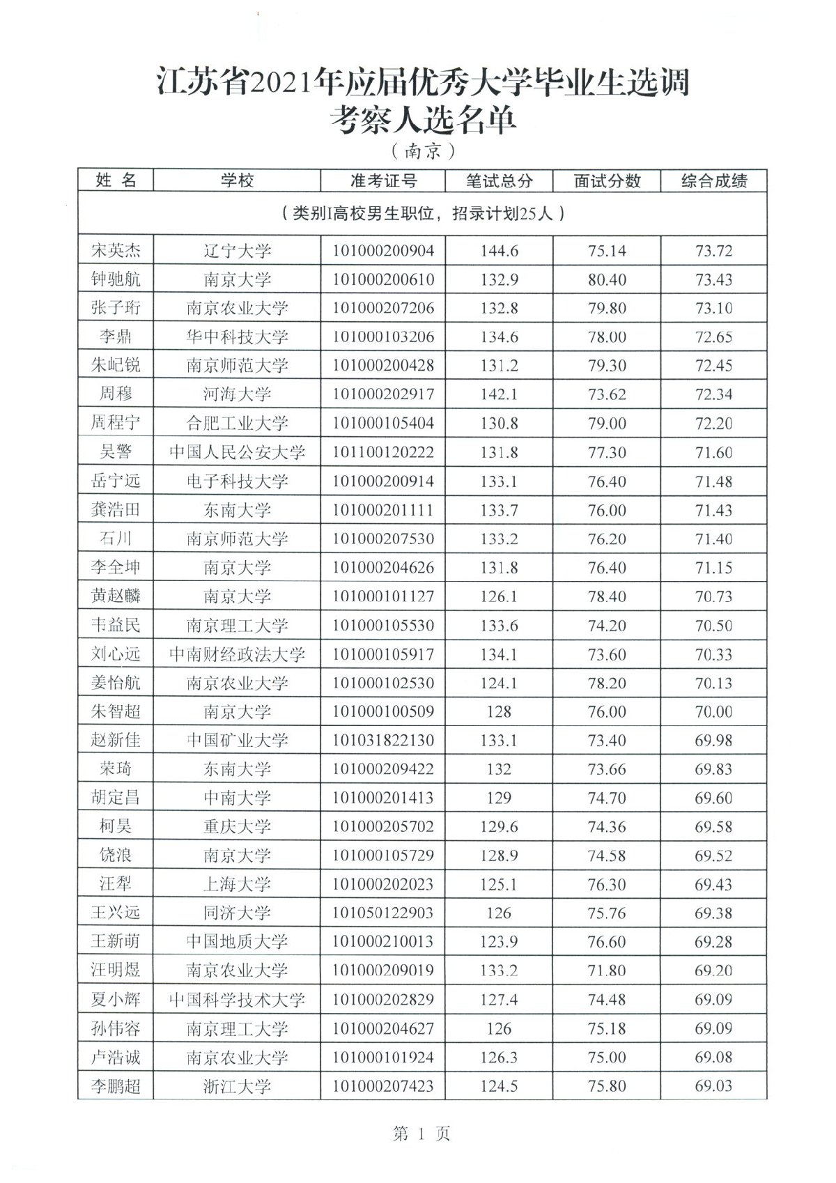 江苏省2021年应届优秀大学毕业生选调考察人选名单一览