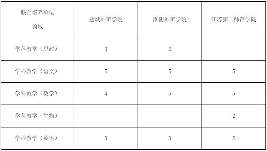 第三十九条 与江苏警官学院、盐城师范学院、江苏第二师范学院、淮阴师范学院、南瑞集团等单位联合培养硕士研究生的相关专业和计划等详见招生专业目录。其中教师教育学院与有关单位联合培养的教育硕士不按方向招生,不单独划线,实行统一招生、统一划线、统一录取,录取阶段学校将根据学生综合成绩排序情况和本人志愿,综合确定联合培养学生名单,志愿未能满足且不服从学校安排的将不予录取。具体拟招生计划如下表所示。