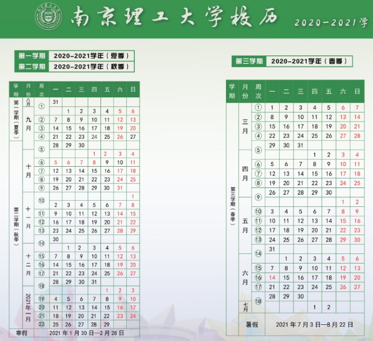 根据《南京理工大学2020-2021学年校历》,暑假时间为2021年7月3日~8月22日,则秋季开学时间为8月23日。