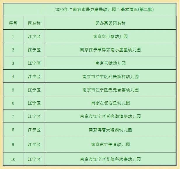 | 1 | 江宁区 | 南京市江宁区明月港湾幼儿园 |