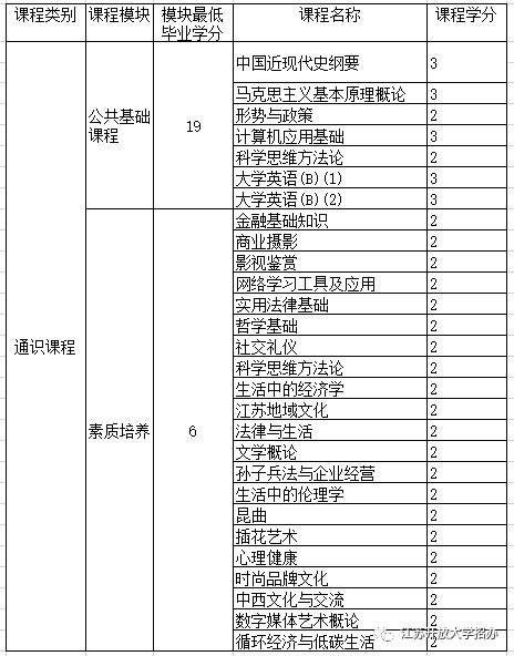 通识课程包含公共基础课程与素质培养课程两个模块,为选修课程。公共基础课程需要最低修满19学分,素质培养课程需要最低修满6学分。通识课程门类较多,涉及面广,利于学生根据个人情况自主选择学习。