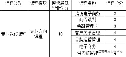 专业选修课程是专业的方向课程,可以根据个人喜好与兴趣选择课程,最低修满10学分。