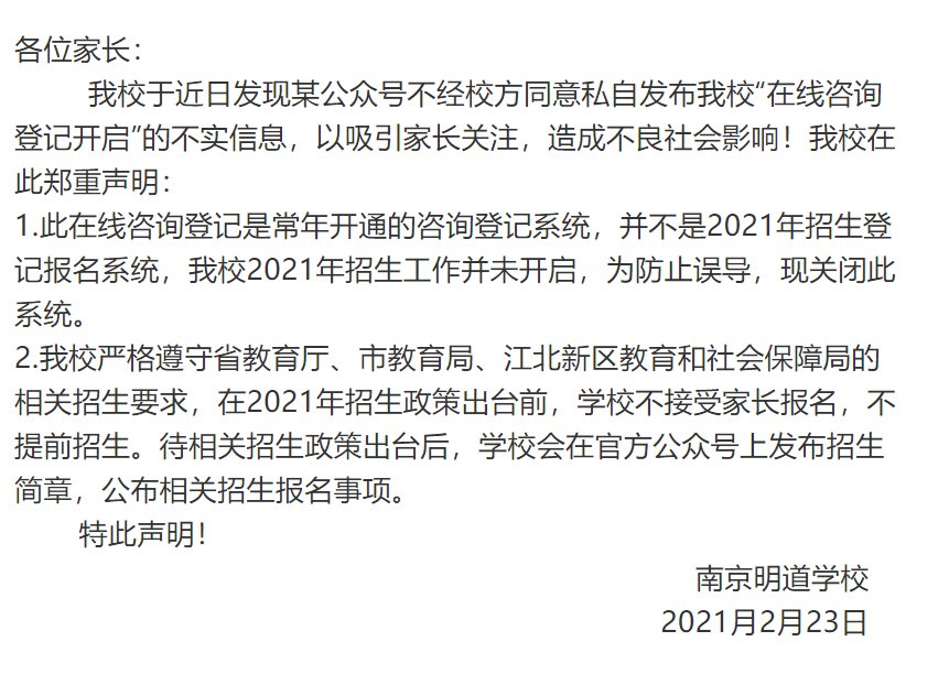 南京明道中学2021年招生最新声明(南京明道中学2021年招生最新声明是什么)