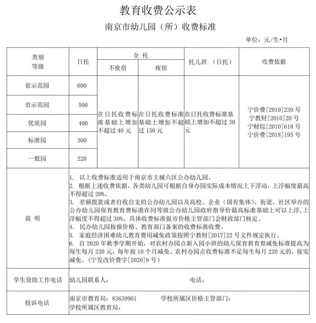2021春季南京市幼儿园收费标准一览(南京幼儿园学费2021年收费标准)