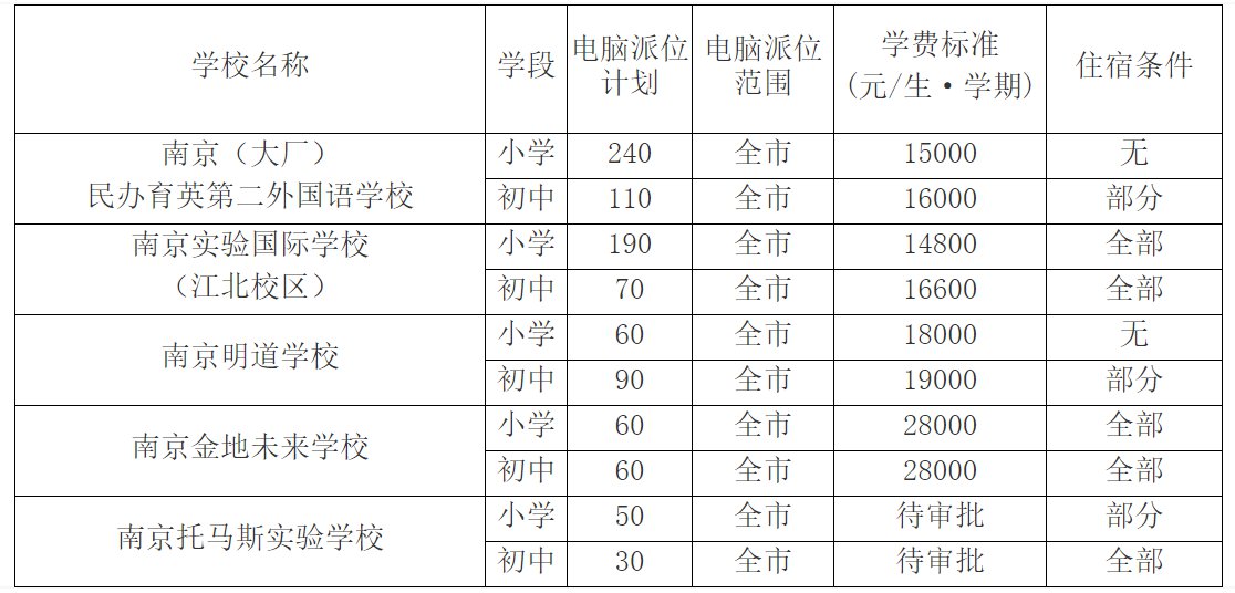 小升初学生可在民办初中和南京外国语学校中最多选2所报名。超过规定日期,不得参加电脑派位报名。