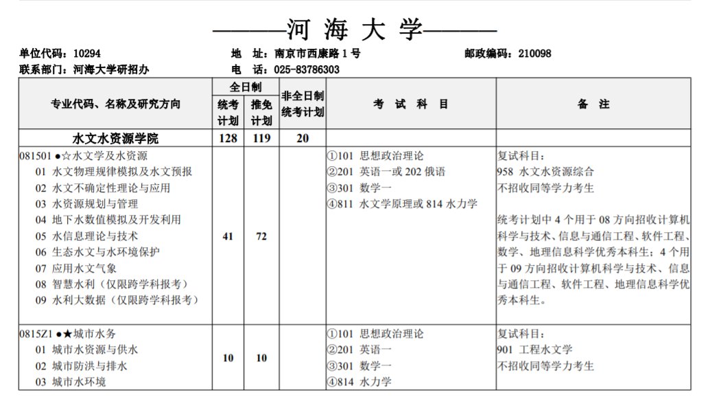 河海大学考研有非全日制专业吗 2020河海大学非全日制研究生招生简章