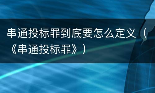 串通投标罪到底要怎么定义(《串通投标罪》)