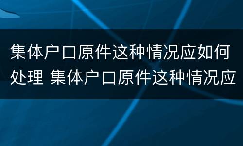 集体户口原件这种情况应如何处理 集体户口原件这种情况应如何处理好