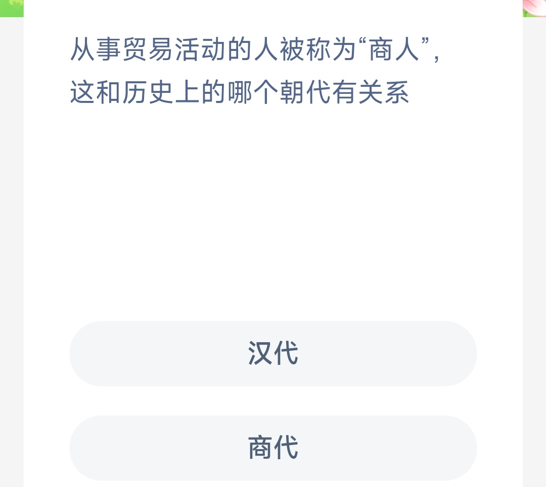从事贸易活动的人被称为商人这和历史上的哪个朝代有关系 ?商代还是汉代?木兰小课堂10.29答案