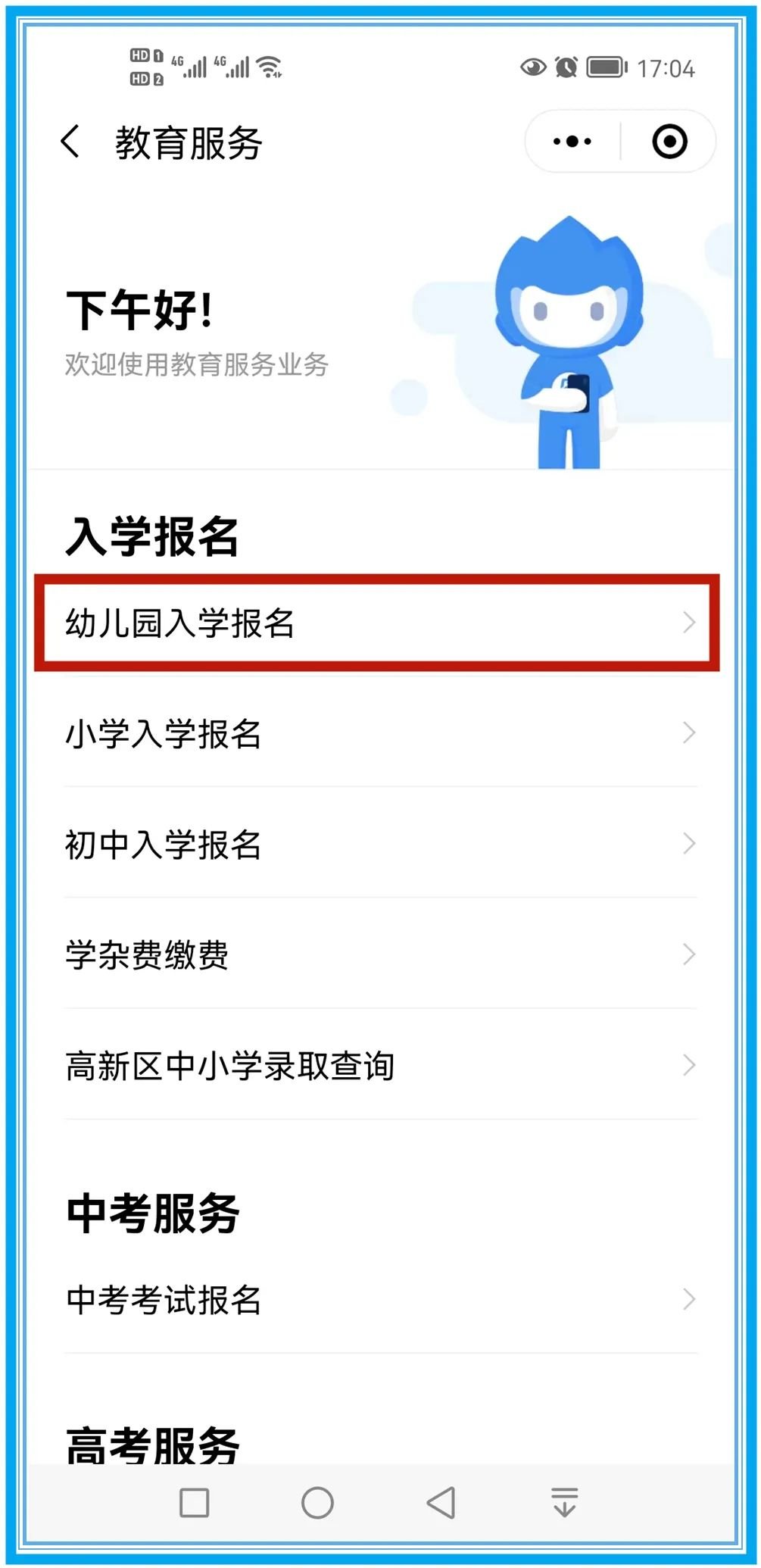 第二步:选择“幼儿园入学报名”(期间需要操作者实名登录验证)
