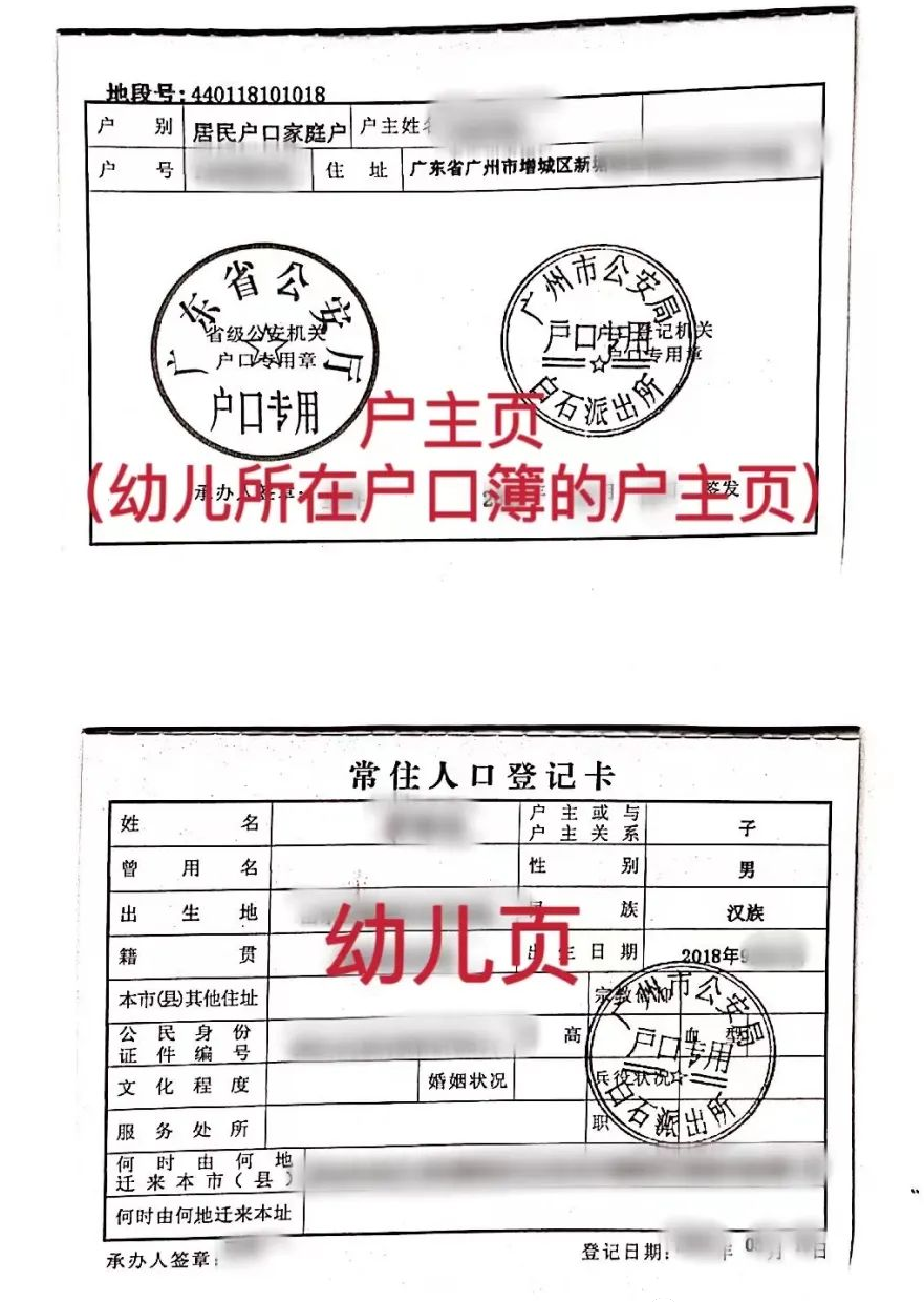 户主与幼儿复印在同一页面、法定监护人二代身份证正反面复印在同一页面、房产证或购房合同和发票复印主要内容页;免疫证(到粤苗app上自行下载打印)