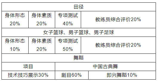 二、田径、男女子篮球、男子足球、舞蹈特长生招生