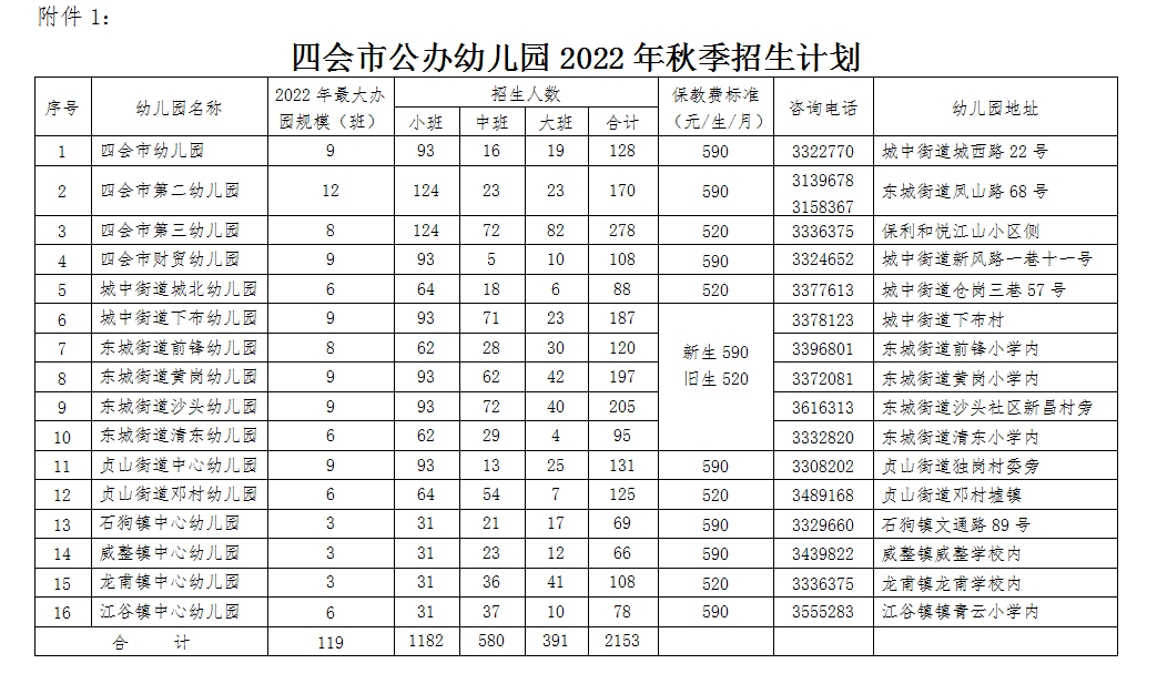 肇庆四会市公办幼儿园2022年秋季招生计划