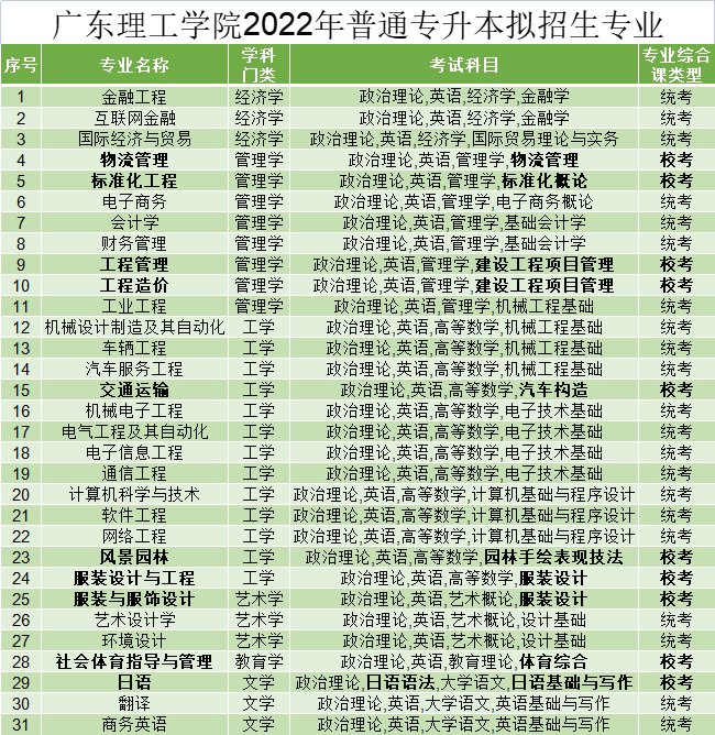 广东理工学院2022年专升本拟招生专业 广东理工学院2022年专升本拟招生专业有哪些