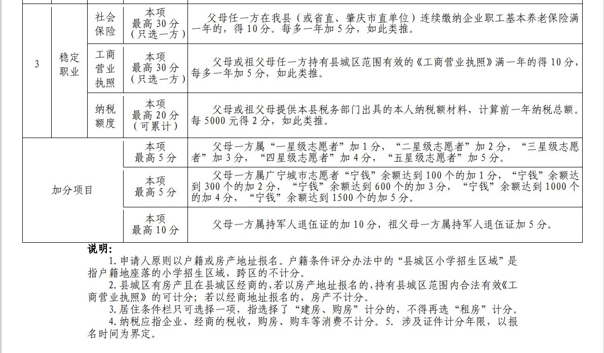 广宁县城区外来人员随迁子女入读公办小学一年级计分办法(2021年)