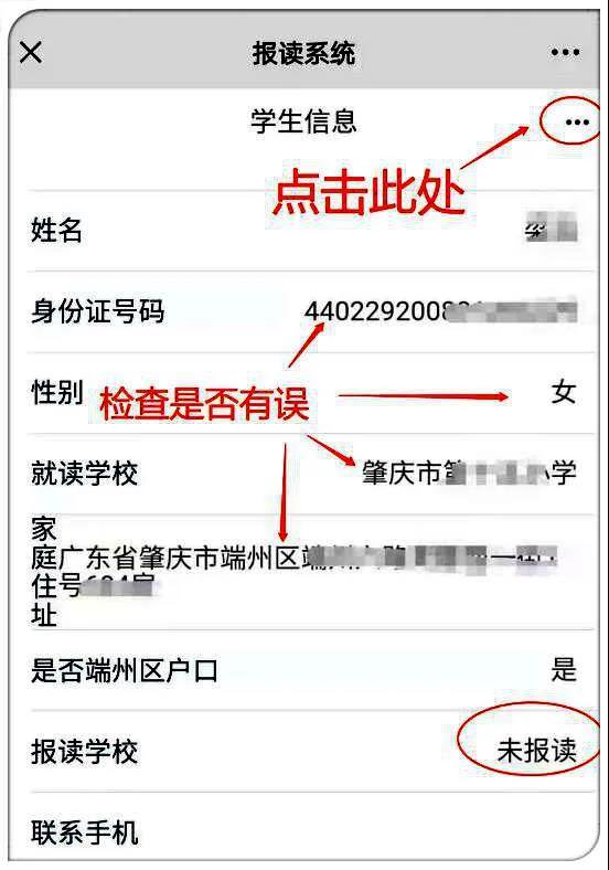 3、登录后出现如下页面,检查填报信息是否学生本人,显示“未报读”,可以点击右上角三个圆点,展开操作菜单。