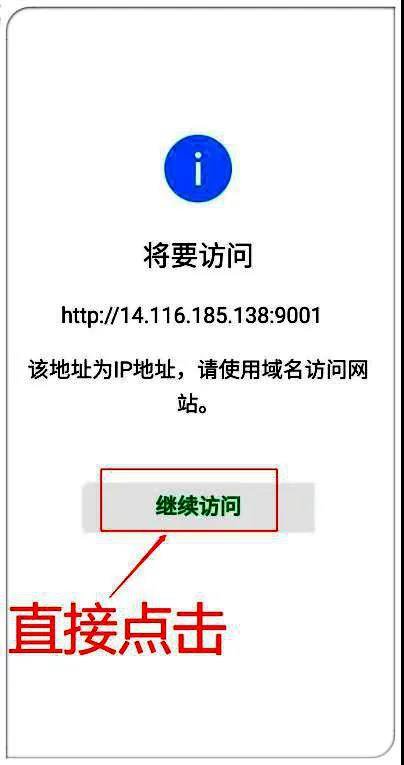 1.如手机微信自带有提醒如下图,点击“继续访问”: