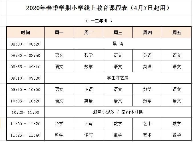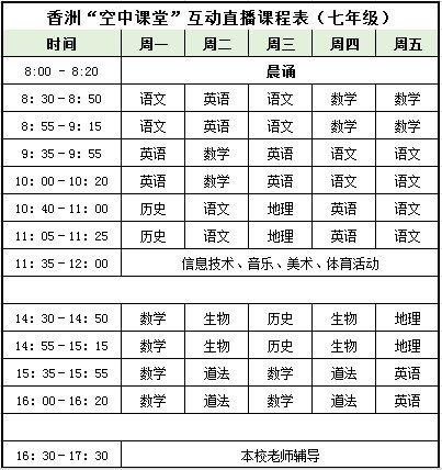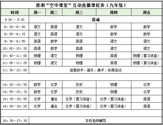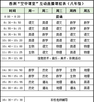 珠海香洲区”空中课堂”最新课程表(空中课堂网课课程表)