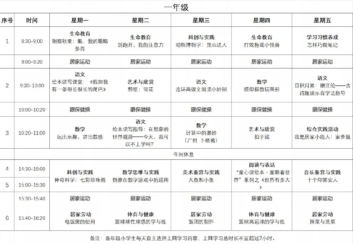 茂名粤课堂小学一年级课程表(茂名市第一中学课程表)