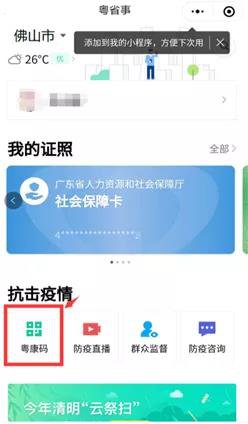 方式一:打开粤省事首页,选择城市→抗击疫情→粤康码;