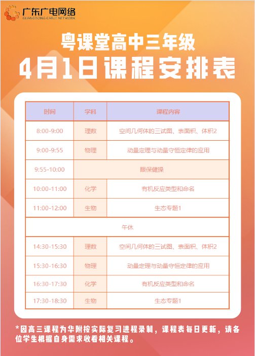 茂名粤课堂3月30日高三课程表(粤课堂最新课程表)
