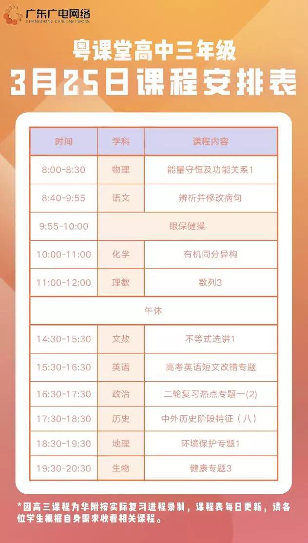 茂名粤课堂3月25日高三课程表(茂名网络大课堂)