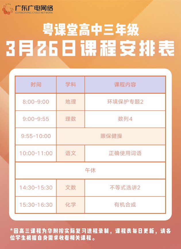 茂名粤课堂3月26日高三课程表 茂名网络大课堂