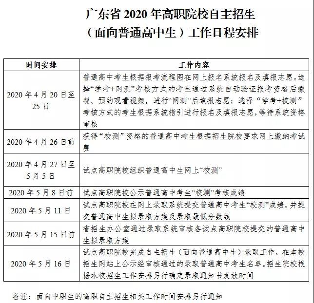 以下是广东省2020年高职院校自主招生(面向普通普通高中生)工作日程安排