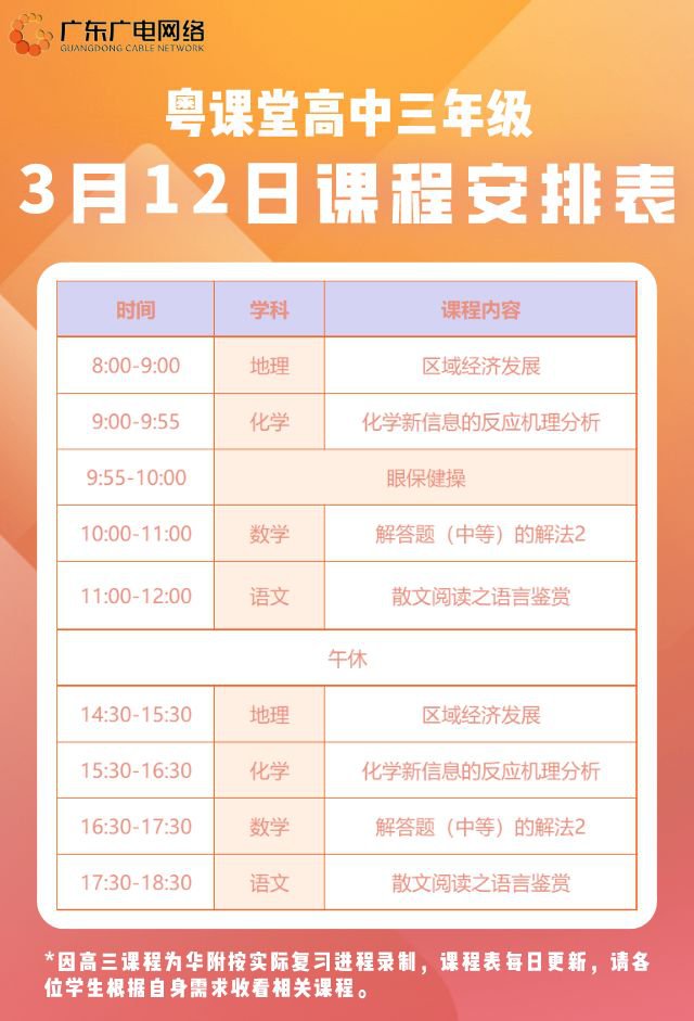 【3月12日高中三年级课程】