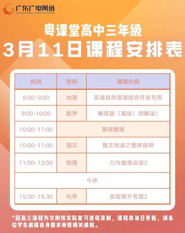 茂名粤课堂3月11日高三课程表(茂名网络大课堂)