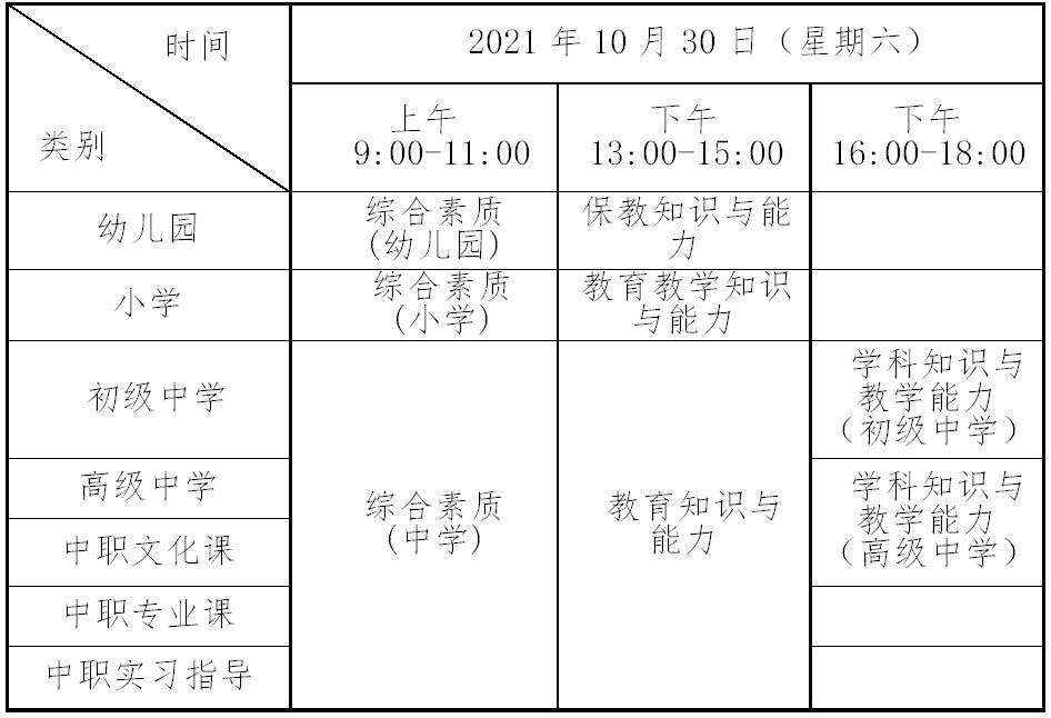 2021年下半年广东梅州教师资格证笔试时间及科目:(笔试各科目采用纸笔方式进行)