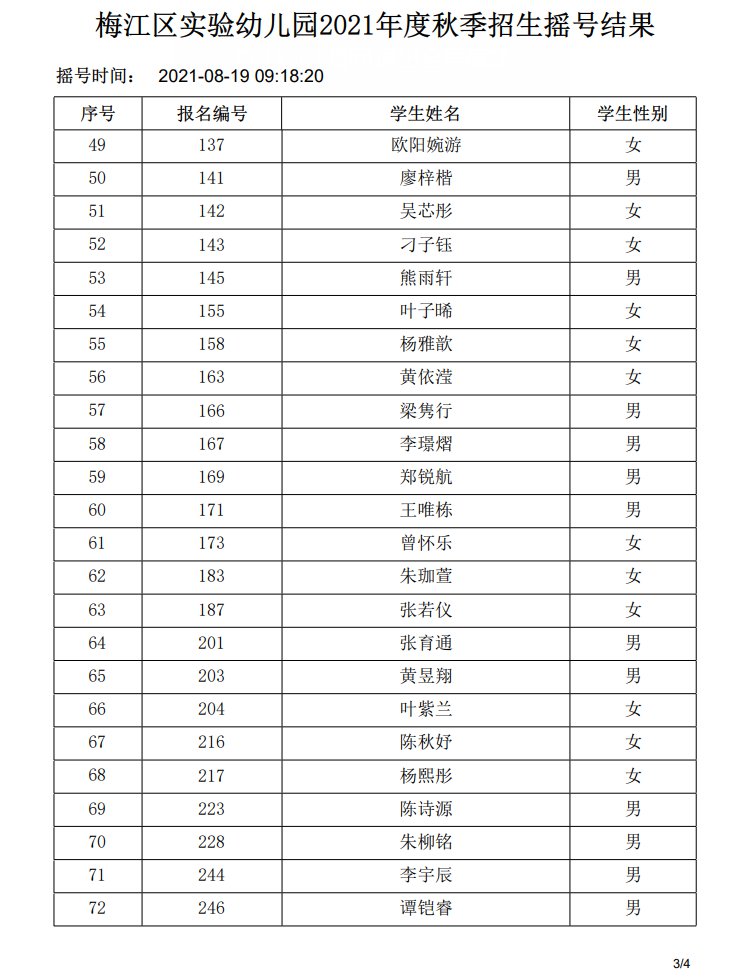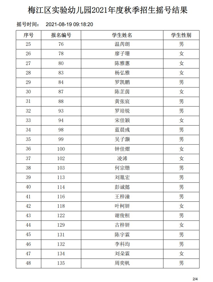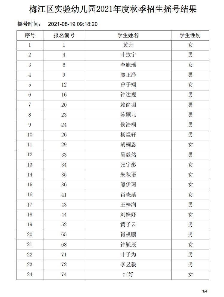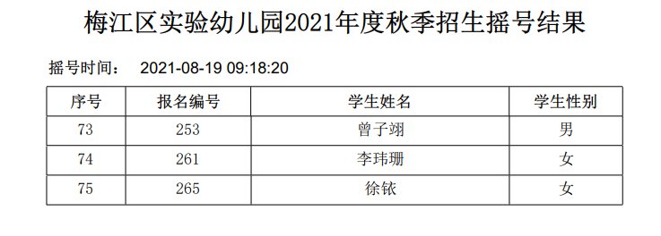 梅江区实验幼儿园2021年度秋季招生摇号结果