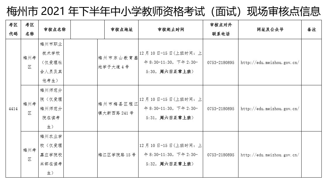 2021梅州下半年教师资格考试面试审核地点(附审核材料)