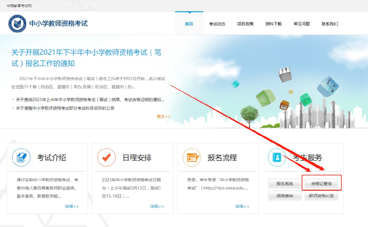 1、查询入口:“中小学教师资格考试网”,点击进入查询页面