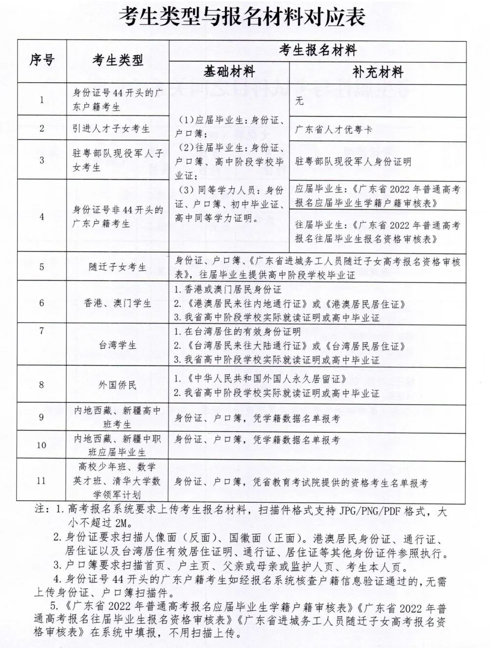 报名前,考生应事先准备符合广东省报考资格的相关证明材料(含身份证、户口簿、学籍学历等材料),在所在中学或到县(市、区)招生办公室进行报名资格初核。